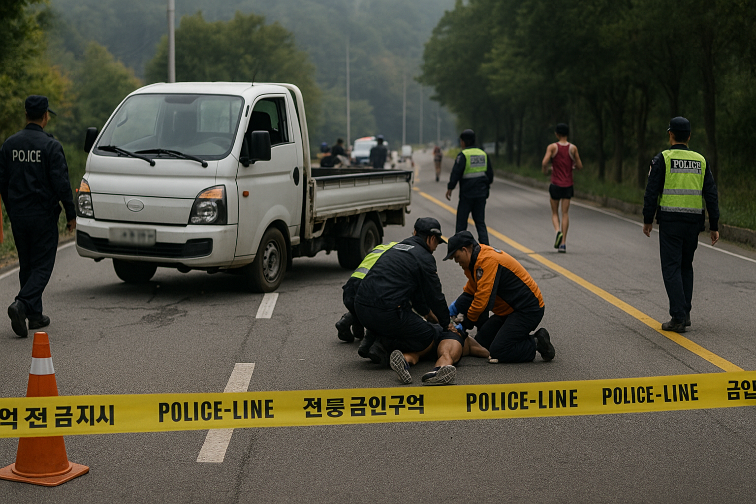 “선두로 달리던 20대 선수, 트럭에 치여 쓰러졌다”