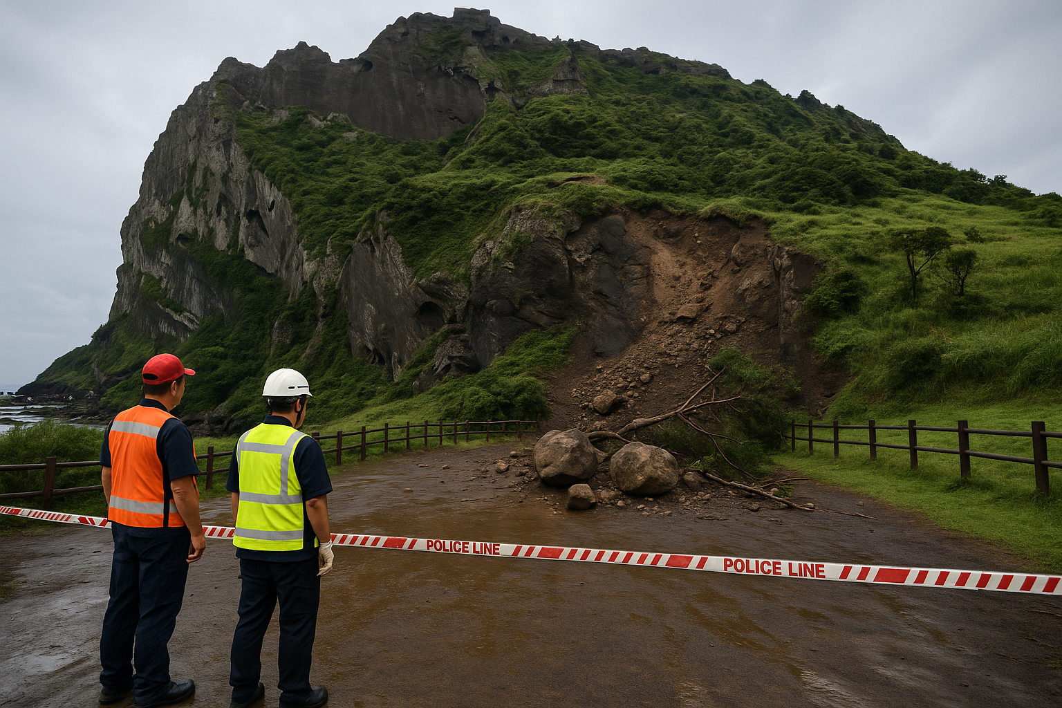 - 성산일출봉에서 암반·나무 낙석 발생, 다행히 인명 피해 없음