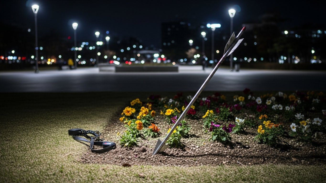 사건은 지난 7일 밤 11시 40분쯤, 청주시 상당구에 위치한 청소년광장 일대에서 발생했다. 50대 여성 A씨는 반려견과 함께 광장을 산책하던 중, 갑작스러운 ‘퍽’ 하는 소리를 들었다. 주변을 살펴보니 광장 화단에 정체를 알 수 없는 화살이 꽂혀 있었다. A씨는 즉시 경찰에 신고했고, 현장에 출동한 경찰은 상황의 심각성을 빠르게 인지했다. 확인 결과 화살은 A씨로부터 약 2.5m, 반려견으로부터는 불과 1.5m 떨어진 지점에 떨어져 있었다. 만약 조금만 방향이 달랐다면 인명 피해로 이어질 수 있었던 아찔한 상황이었다.