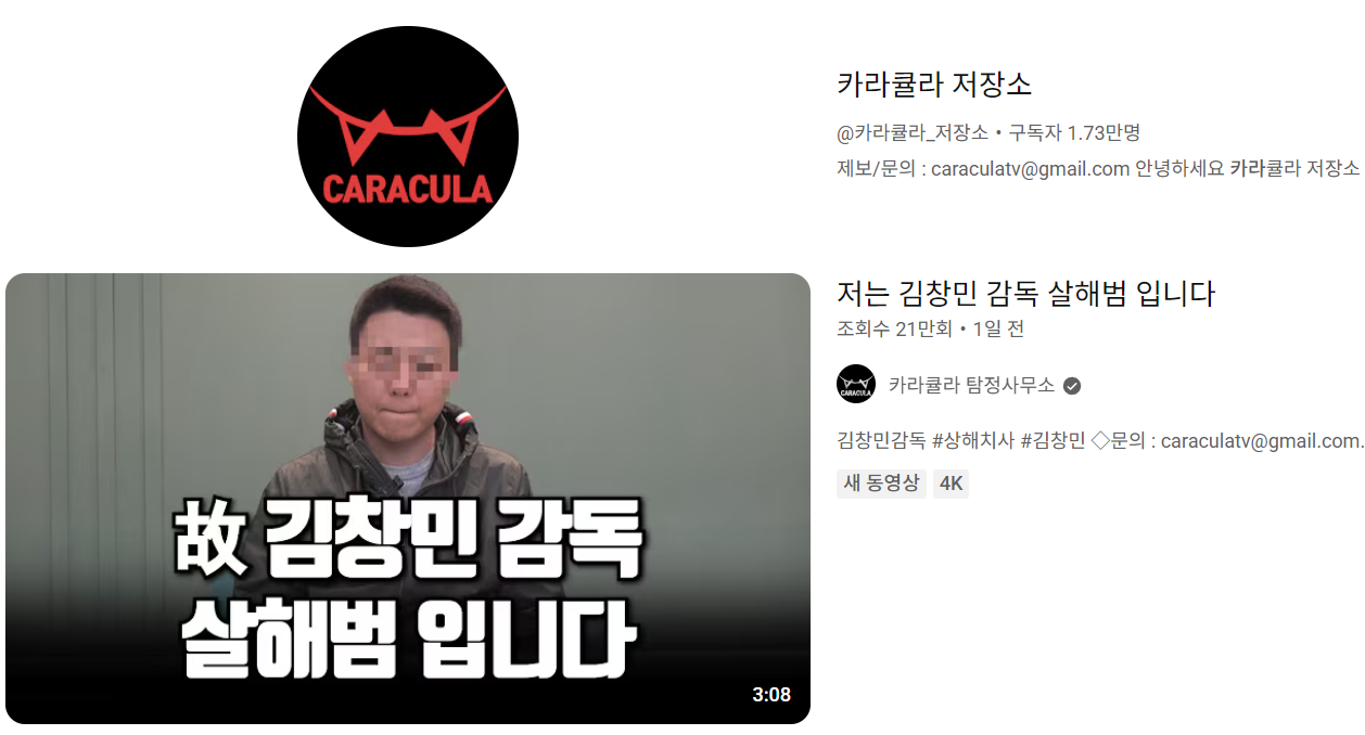 김창민 감독 살해 가해자, 유튜브 등장…“이게 사과냐” 분노 폭발