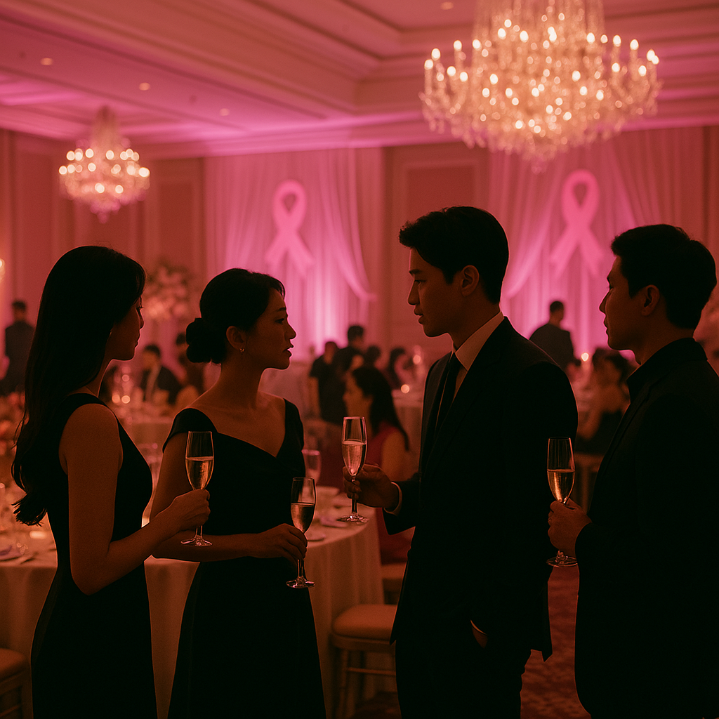 유방암 인식 캠페인에서는 핑크리본이 국제적 상징이다. 그러나 공개 사진·영상에는 핑크리본을 단 참석자가 거의 보이지 않았거나, 단색 아이템도 드물었다는 지적이 많다. “명품 드레스와 노출 의상이 주가 된 무대”라는 비판도 나왔다. 상징성이 빠진 캠페인은 메시지의 진정성과 신뢰성을 약화시킨다.