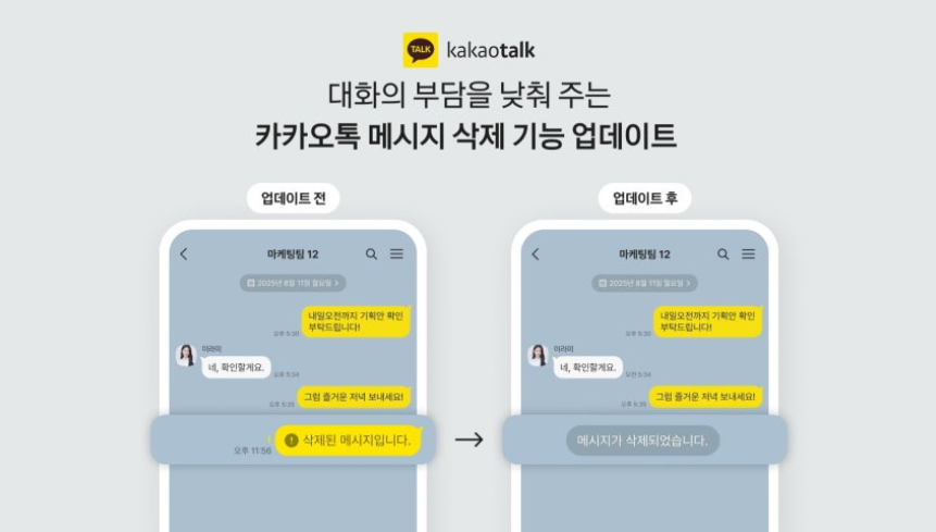 카카오톡의 이번 메시지 삭제 기능 개편은 사용자 편의성을 크게 높이는 변화다. 이제 단순 실수뿐만 아니라, 부주의로 인한 ‘흑역사 메시지’도 하루 안에 깔끔하게 지울 수 있다. 다만, 누가 삭제했는지 모르게 하는 방식은 새로운 사회적 논란을 낳을 수도 있어, 사용자들의 반응은 앞으로도 엇갈릴 것으로 보인다.